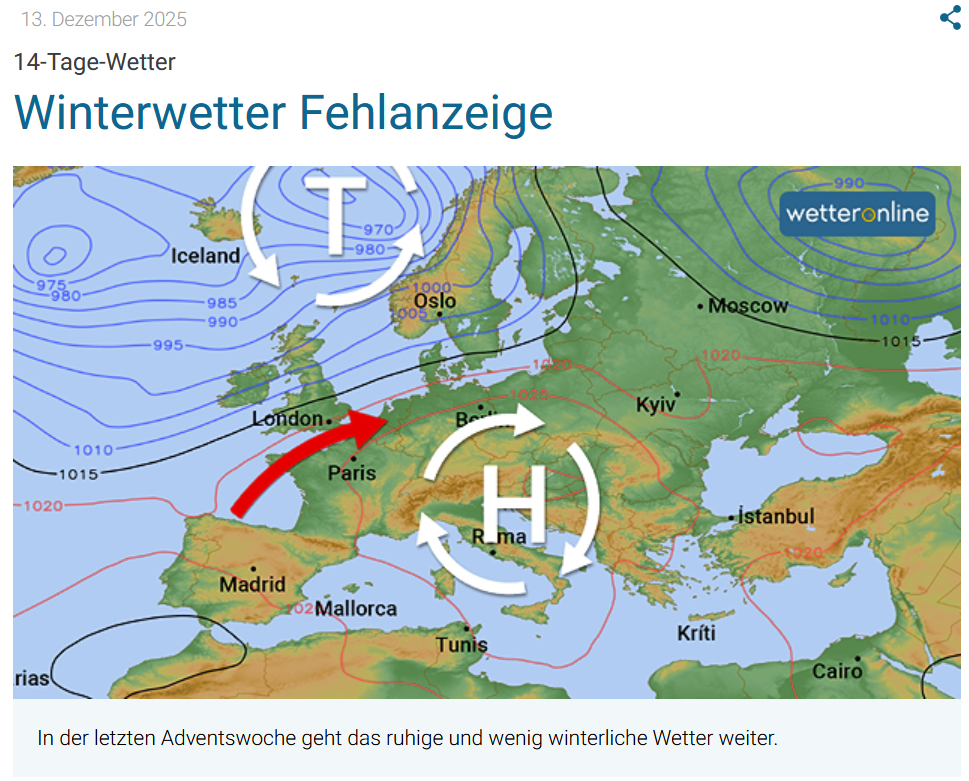20. Dezember 2025Die Wetterlage stellt sich um und damit einhergehend bläst uns ab der kommenden Woche ein teils unangenehmer Ostwind um die Ohren. Er sorgt dafür, dass sich die Temperaturen deutlich kälter...
